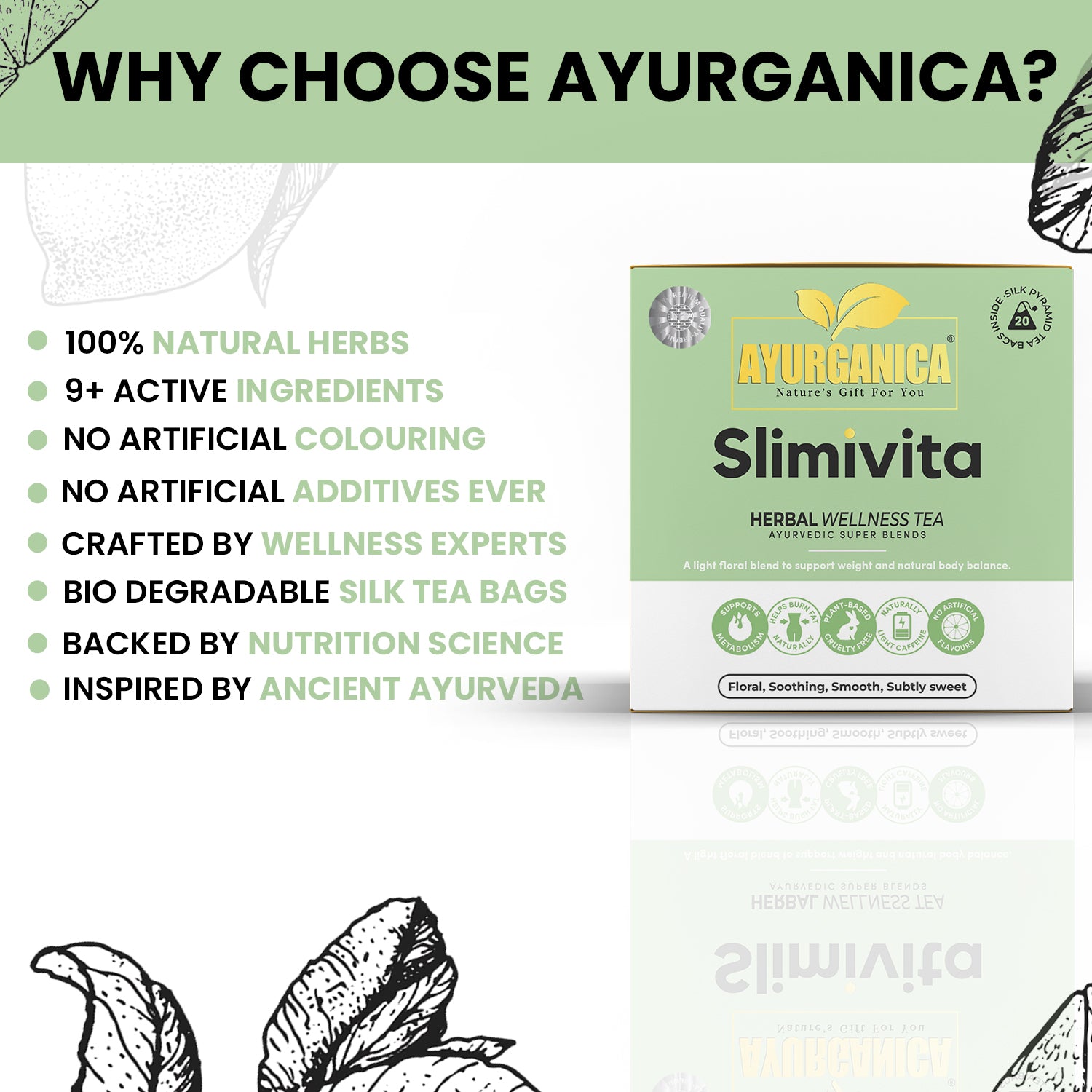 Slimvita is a light and refreshing tea blend created to support weight management naturally. Made with white tea, hibiscus, rose petals, lotus petals, nettle leaf, and cinnamon, it promotes metabolism and helps you feel light and refreshed.