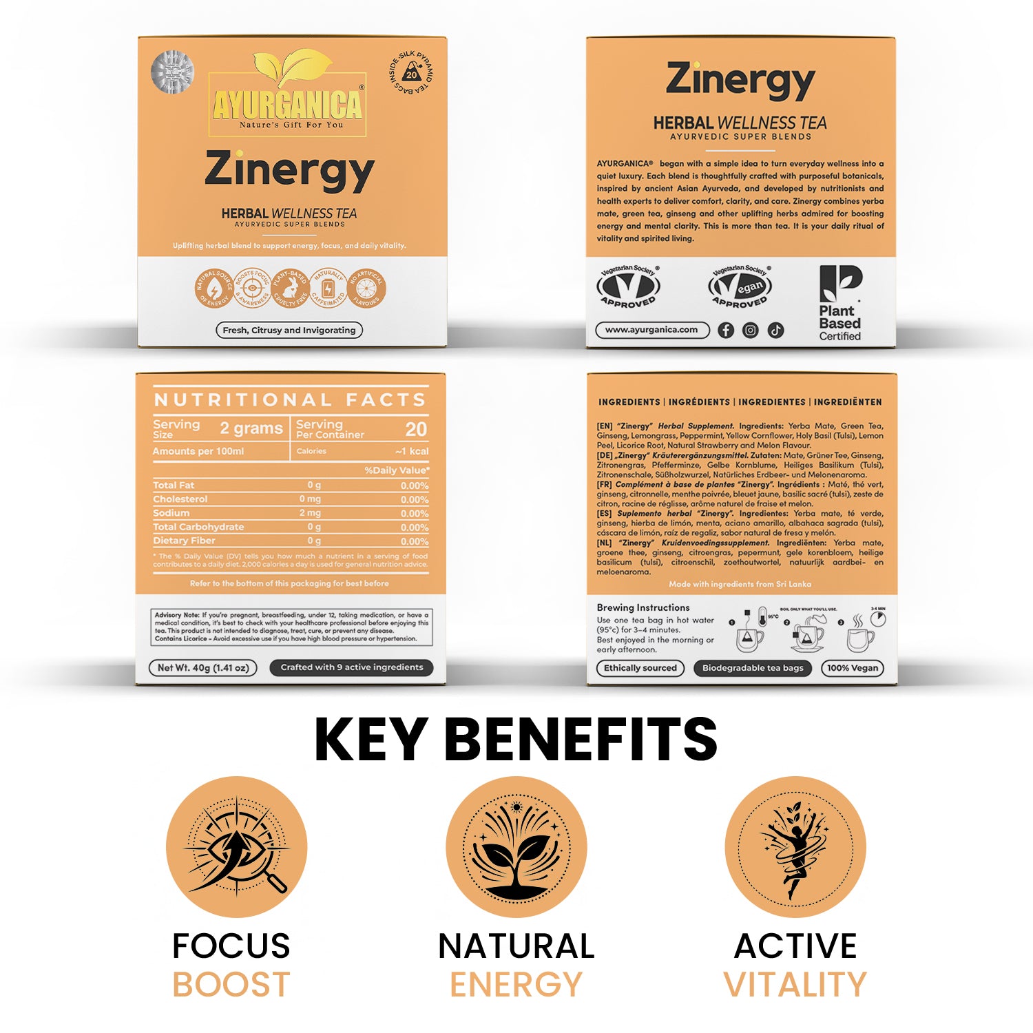 Perfect for busy mornings or an afternoon lift, Zinergy is your go-to tea for energy and productivity.
